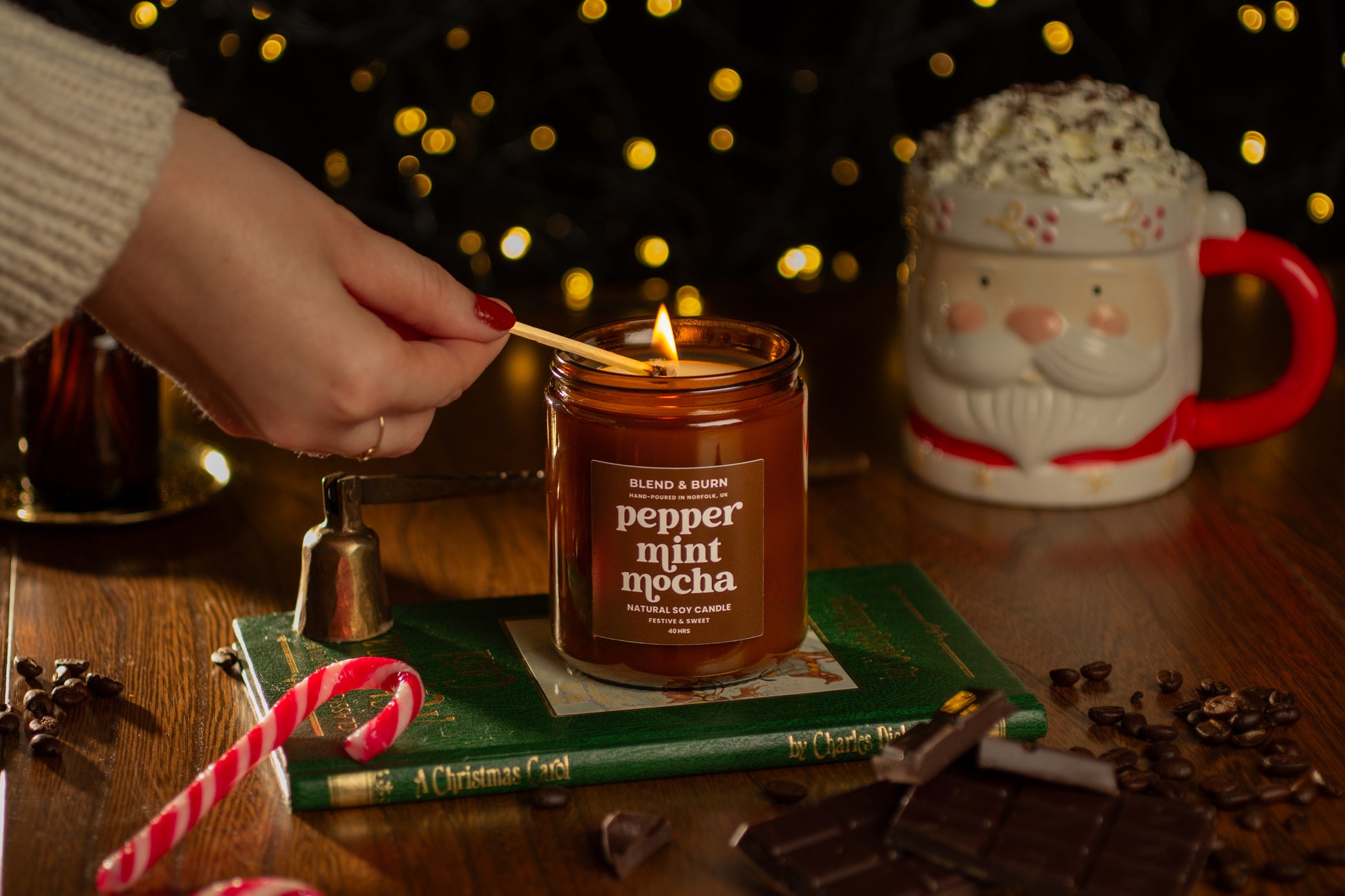 Ho, ho, hello! 🎅🏼 I’m Peppermint Mocha — your go-to candle for turning any evening into a festive café moment. I’m here to fill your home with swirls of whipped cream, rich hot chocolate, and that sweet peppermint kick that feels like Christmas in every sip. ☕️🍫